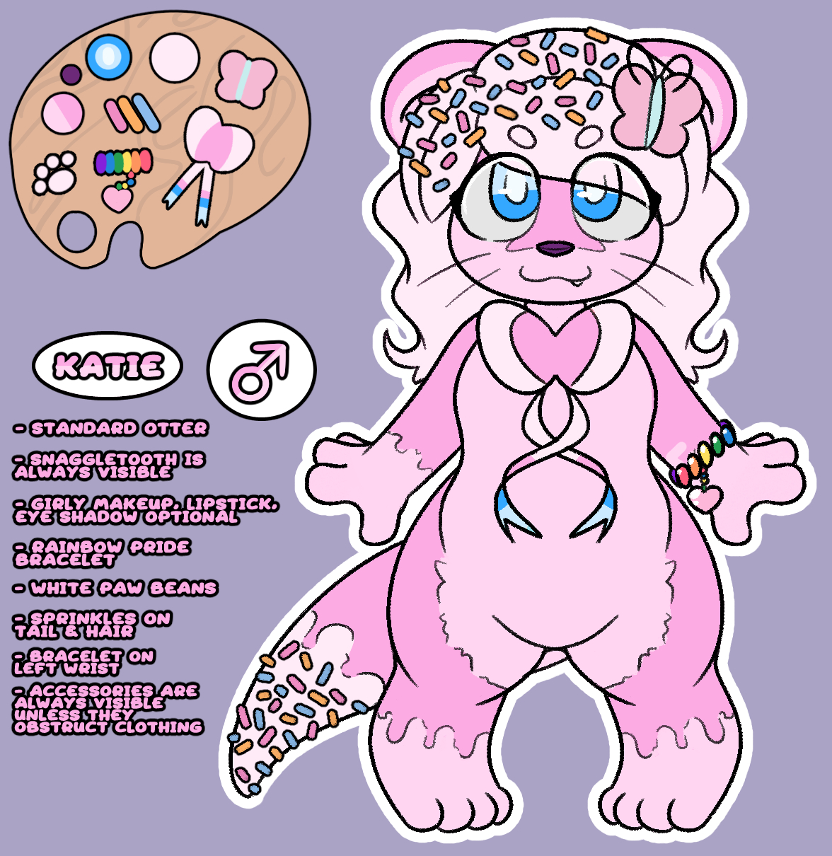 My current ref sheet was drawn by fellow pink otter Lutra!